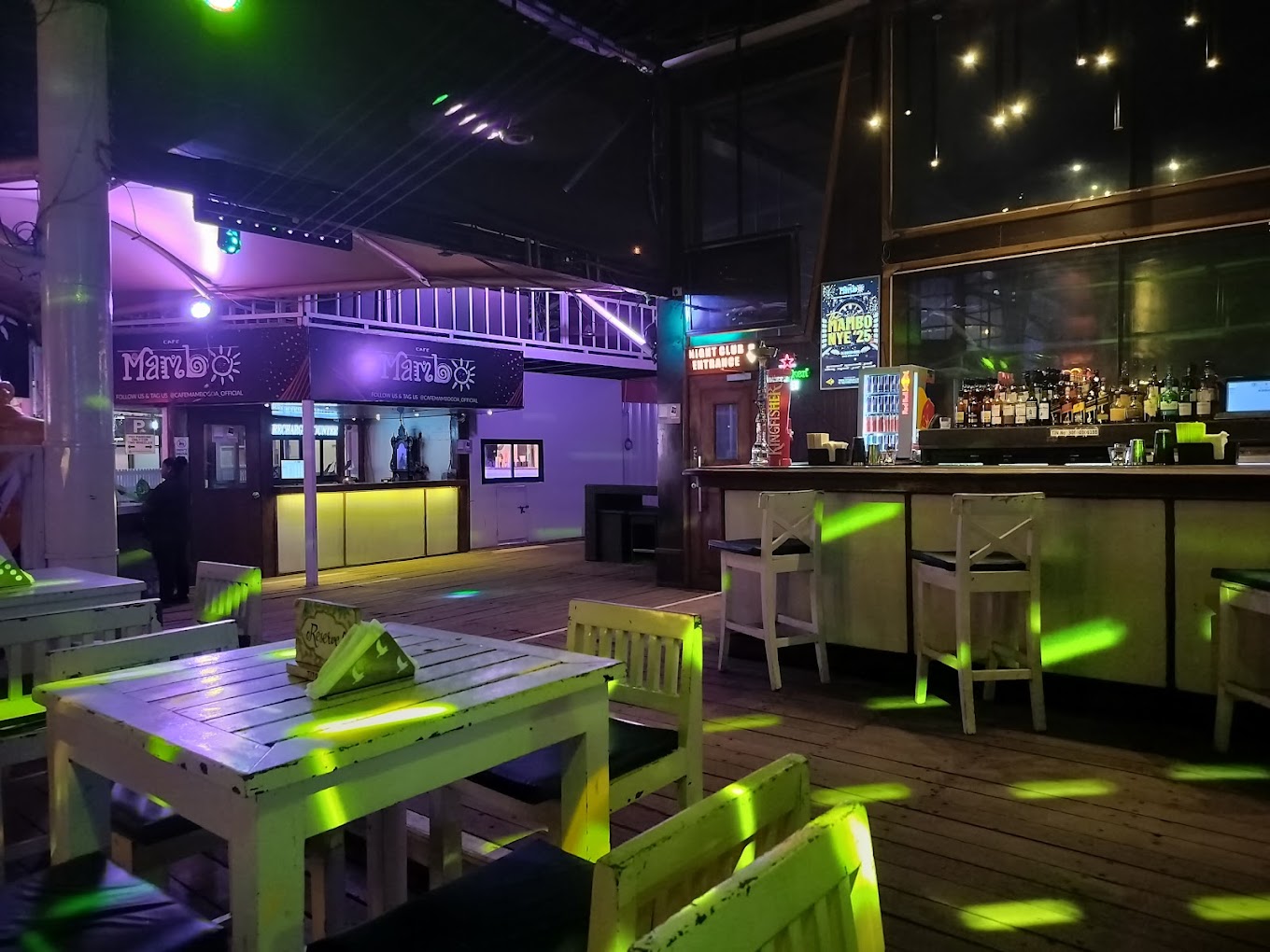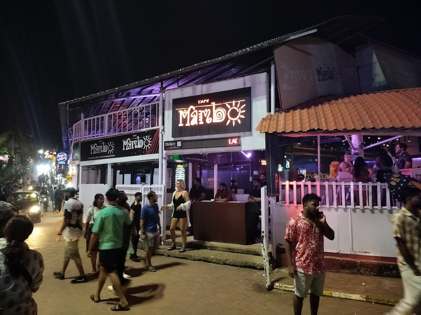 Located on the bustling Tito’s Lane in Baga, Café Mambo stands as one of Goa's most legendary nightlife destinations. Known for its vibrant atmosphere, this beachfront club offers an open-air lounge encircling a lively dance floor, creating an inviting space for party enthusiasts. The club regularly hosts local and international DJs, ensuring a diverse music selection that keeps the energy high throughout the night. Themed nights and special events add to the dynamic experience, making each visit unique. Café Mambo is not just about music; it also boasts a well-stocked bar serving a variety of cocktails, mocktails, and other beverages crafted by skilled mixologists. The culinary offerings include a range of delectable dishes, catering to various palates. With its combination of electrifying music, delicious food, and a picturesque beachfront setting, Café Mambo provides an unforgettable nightlife experience in the heart of Goa.